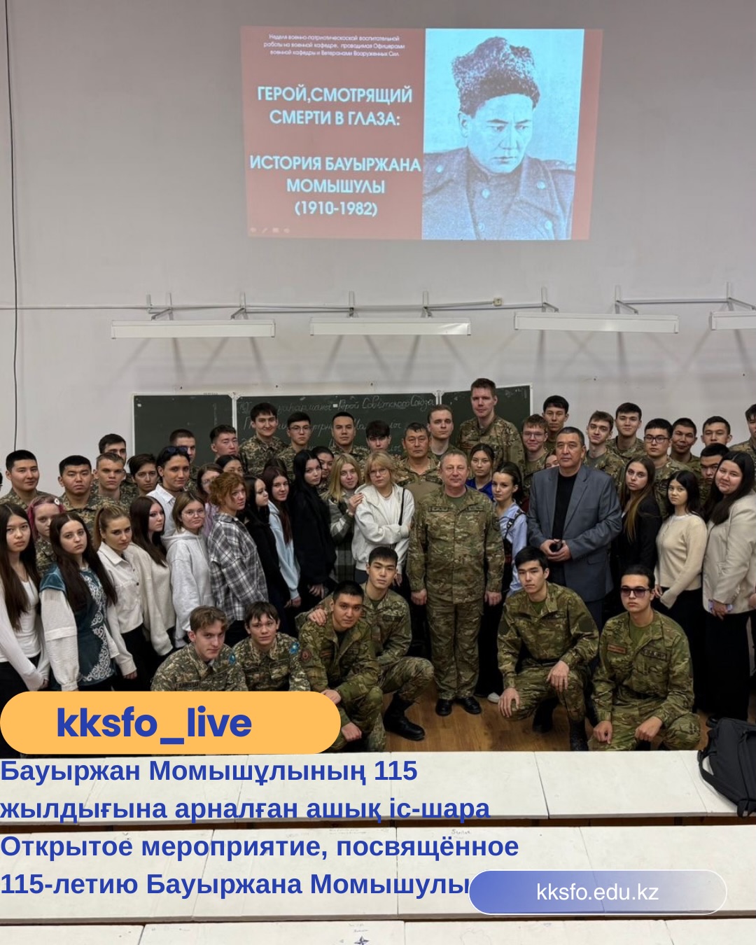 2025 жылғы 11 желтоқсанда Қостанай қызмет көрсету саласының колледжінің студенттері А. Байтұрсынұлы атындағы ҚӨУ-нің әскери кафедрасында өткен, Халық қаһарманы, Кеңес Одағының Батыры Бауыржан Момышұлының туғанына 115 жыл