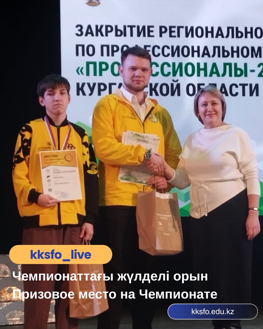 Үшінші курс студенті, Қостанай қызмет көрсету саласының колледжінің МЦТ-23 тобының мүшесі Носков Владимир Александрович, Ресей Федерациясының Қорған облысы аумағында өткен «Кәсіби мамандар» кәсіби шеберлік чемпионатының